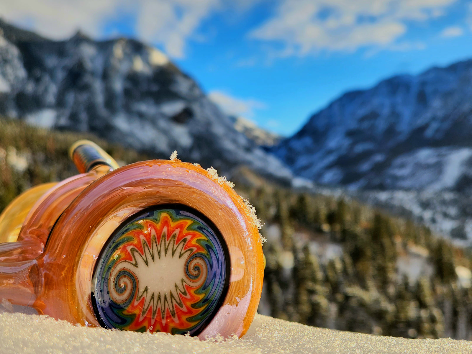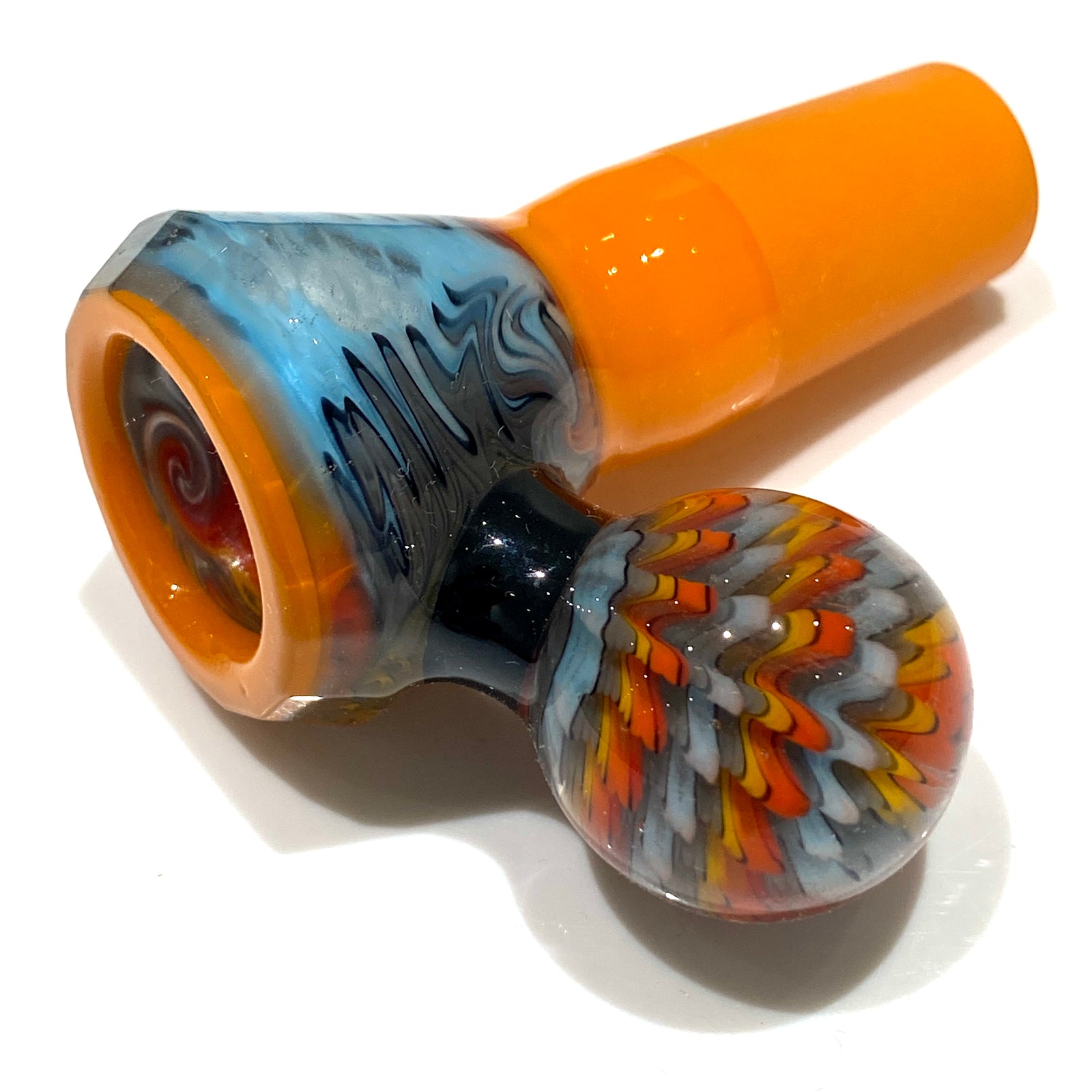 $400.00Orange and Ice Colored Joint 4 Hole Slide with Marble Handle (18mm) (NEEDS POLISH MARBLE)