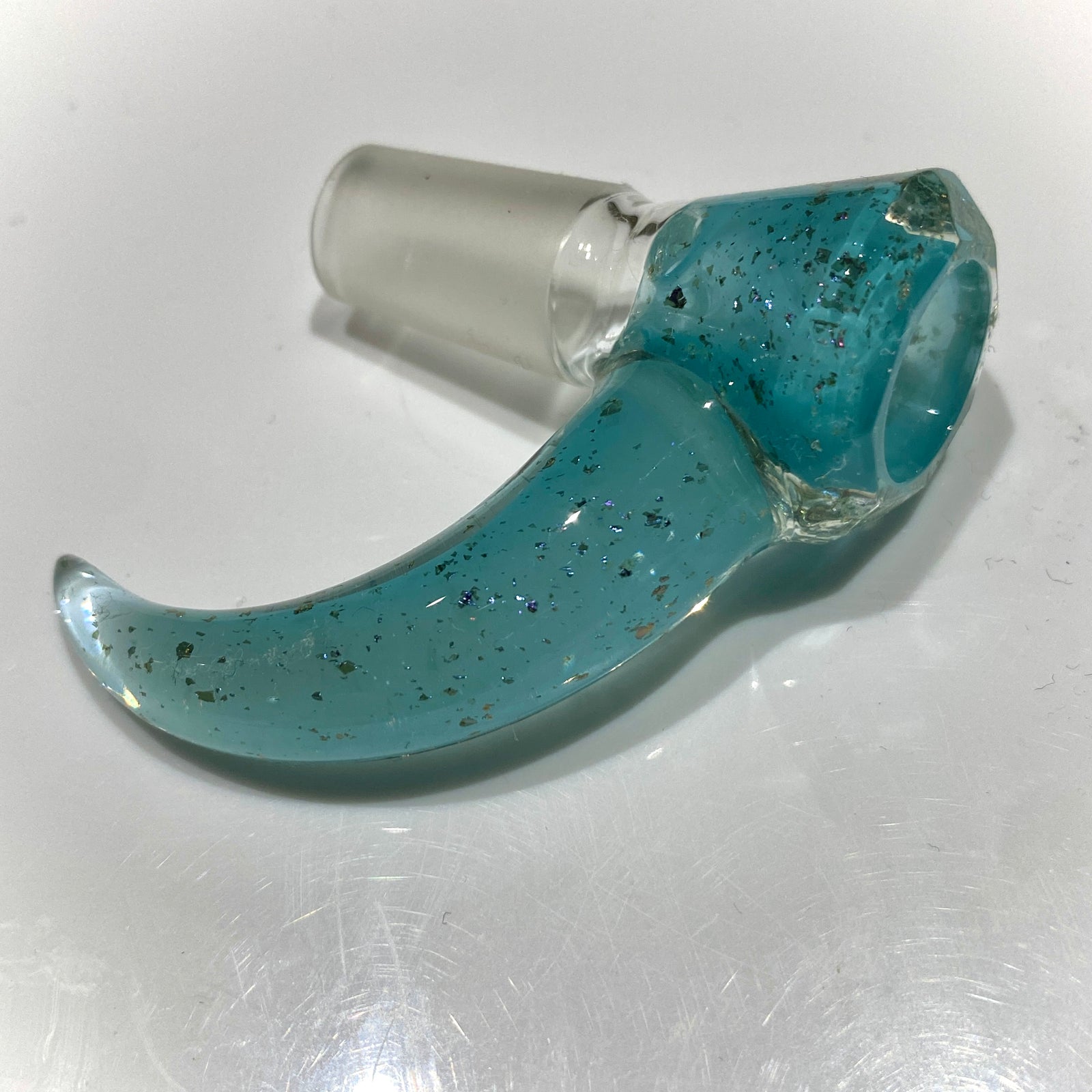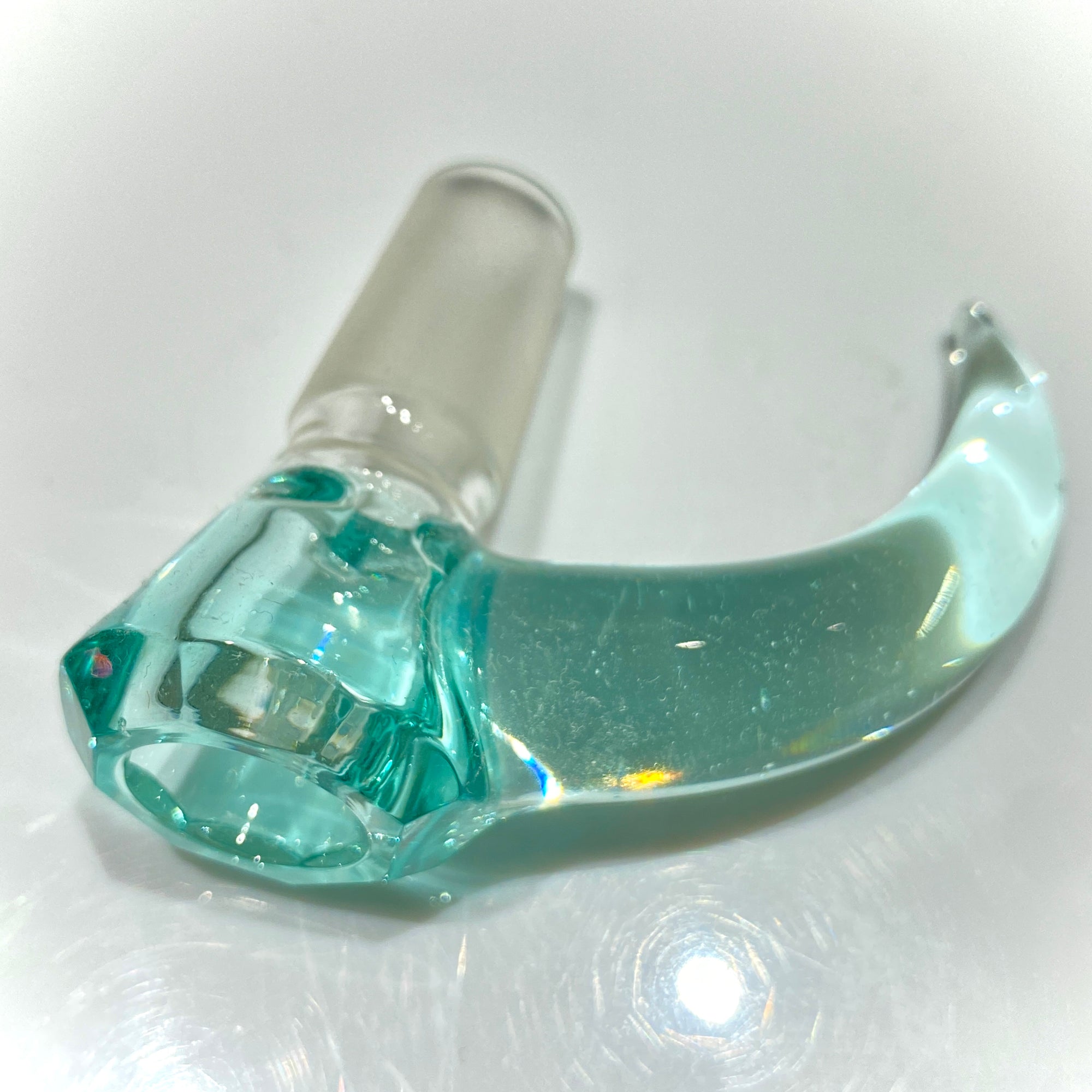 $200.0018mm Faceted 3-Hole Slide with Horn Handle (Clear with Blue Dichro)